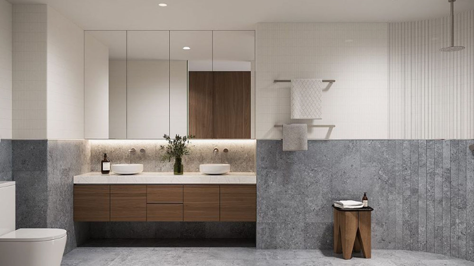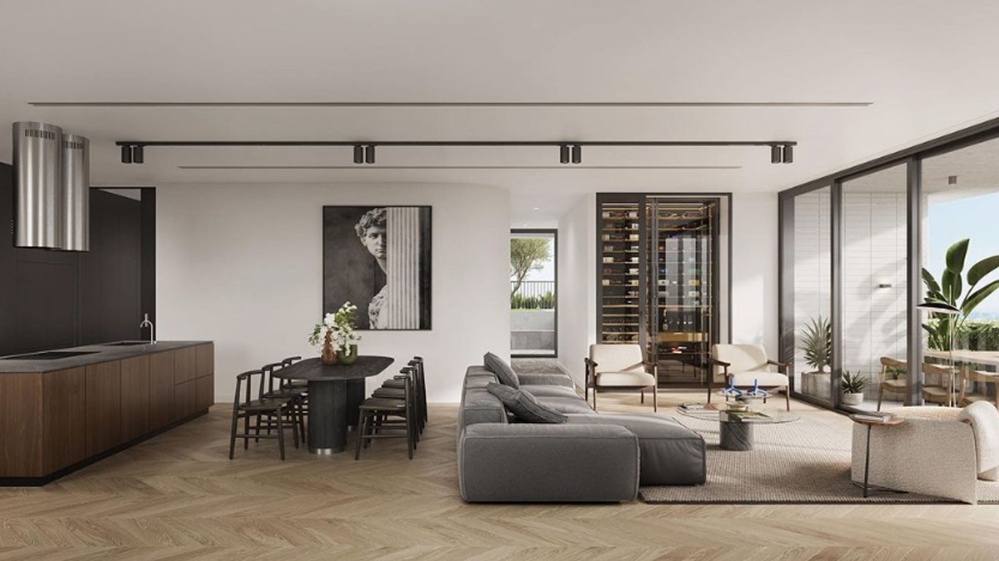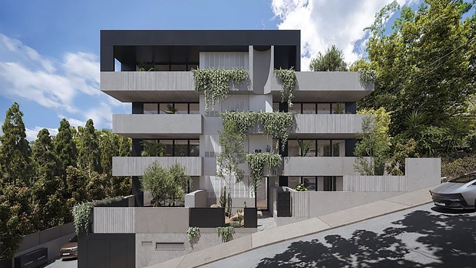 Inspired by simplistic brutalist architecture, the contemporary building features an expansive collection of residences with luxury fixtures and fittings, as well as stylish common spaces.